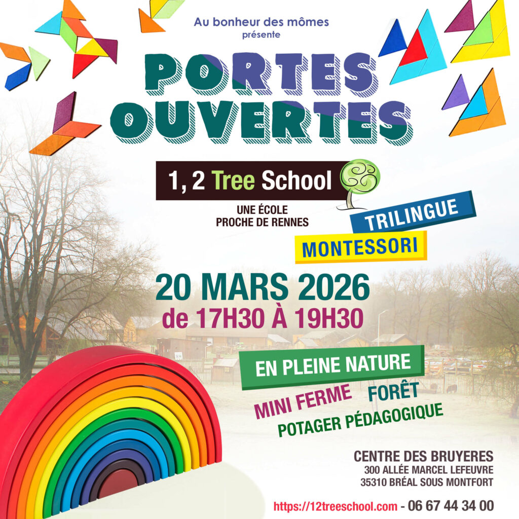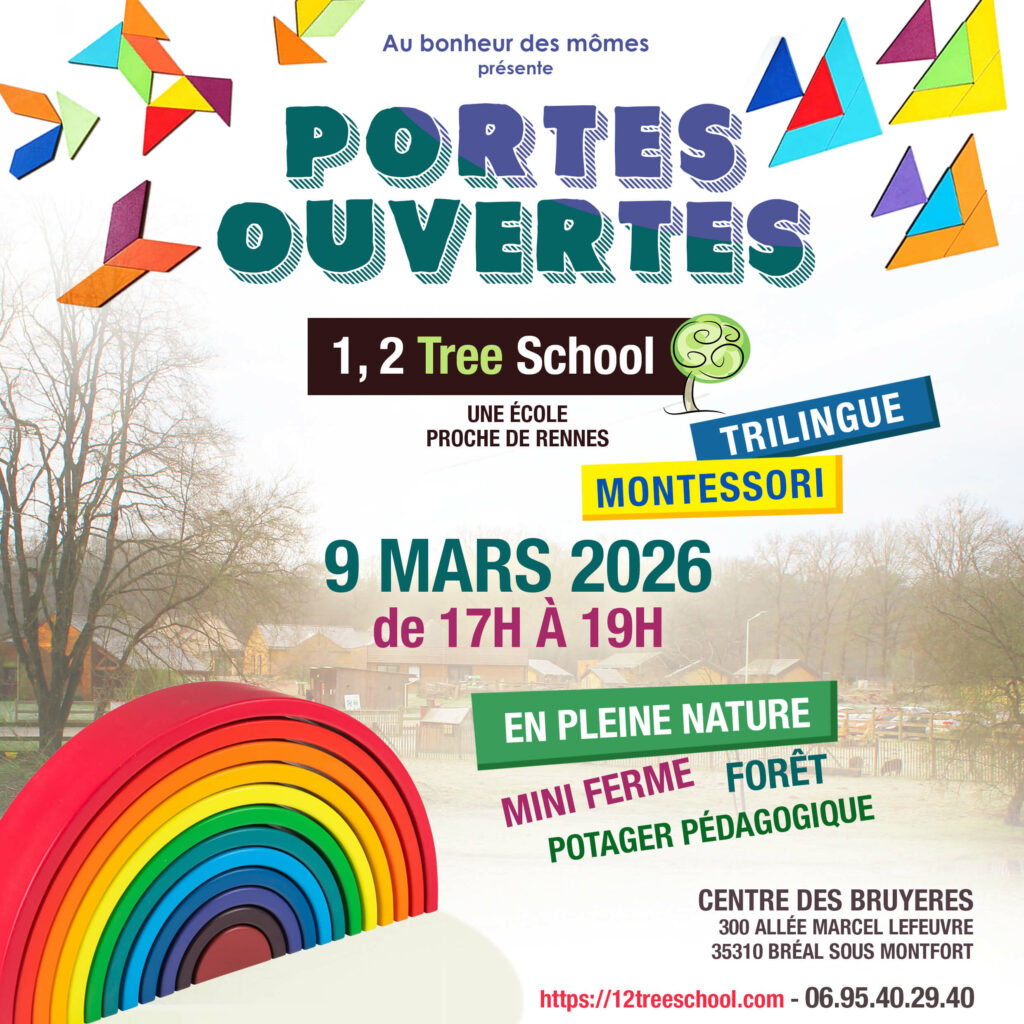 Cette école privée hors contrat offre un enseignement trilingue (français – anglais – espagnol) basé sur la pédagogie Montessori et axé sur l’éco-responsabilité. Elle est gérée par l’association Au bonheur des Mômes et accueille environ 30 enfants âgés de 3 à 12 ans depuis 2021 dans un cadre apaisant en pleine nature à Bréal-sous-Montfort (sud-ouest de Rennes, Bretagne).